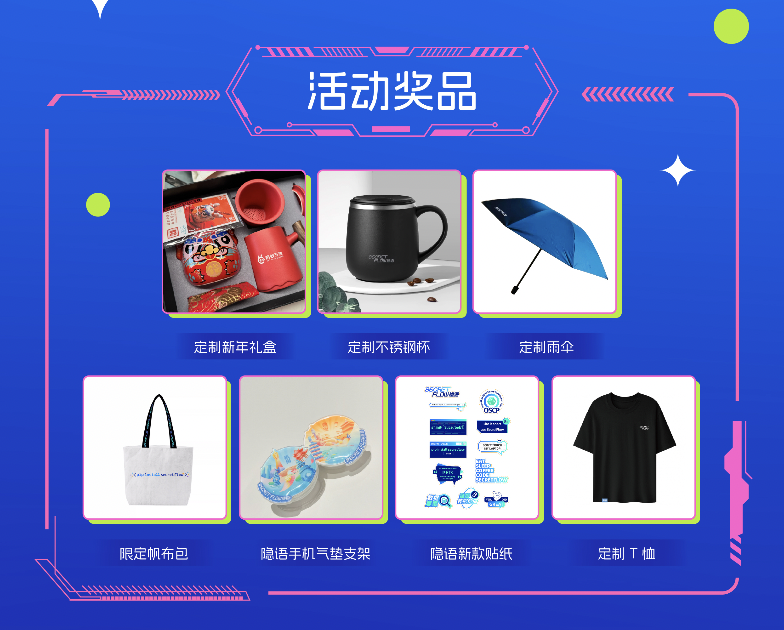 13:00—14:00,套圈/飞镖/拼图/快问快答/1v1挑战赛/隐语留言墙...全员“e“人,现场解锁各种趣味互动游戏!为隐语开发者们定制的特别线下破冰环节,更有超多惊喜礼品等你赢取。