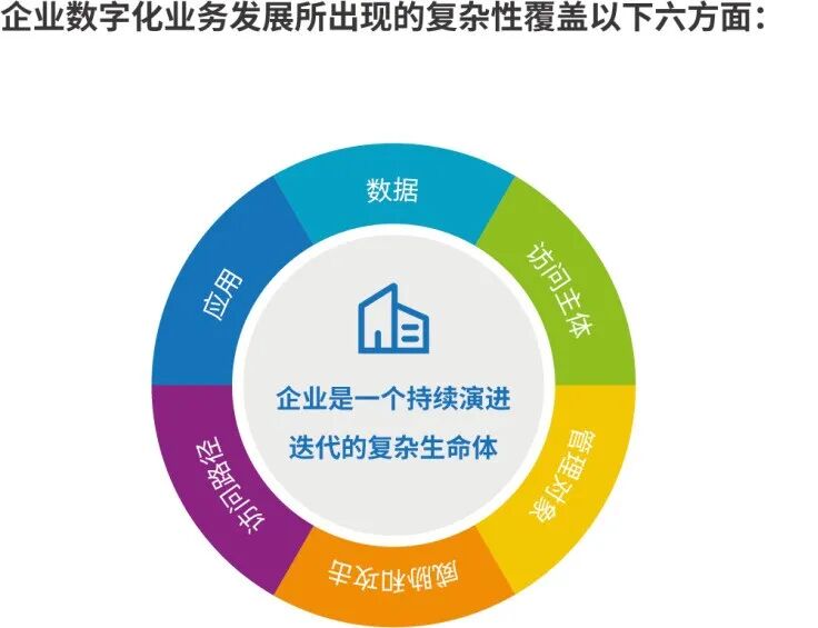 数字化企业可被视为一个完整的数字生命体,能持续发展出有机生命所必须的成长进化、复杂交互和全局智能能力。技术的演进、系统的升级以及数字化业务的快速发展,共同导致企业运行的复杂性出现爆炸性增长。这种复杂性将会给企业未来信任体系建设带来一系列难题。企业现有的安全管控措施日趋乏力,企业疲于应付各类安全事件,业务效率会受到极大影响,其在处置各类安全事件以及弥补安全事件所带来的损失时,将付出更多的被动成本。