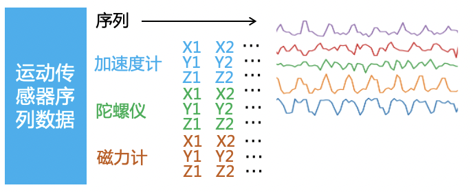 随着智能手机的不断发展,智能手机中嵌入了各式各样的传感器,如加速度传感器、陀螺仪等,这些传感器能够测量XYZ三个轴上的加速度和角速度。在核身过程中这些传感器采集与人体活动相关的数据来识别手机携带者的运动状态,这些数据按照时间顺序排列构成时间序列。