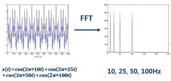 傅立叶变换是数字信号处理领域中十分重要的算法,其目的是将时域上的信号转变为频域上的信号。傅立叶表明:任何连续测量的时序或信号,都可以表示为不同频率的正弦波信号的无限叠加。随着域的不同,对同一个序列的了解角度也随之改变,因此在时域中不好处理的地方,在频域就可以较为简单的处理。