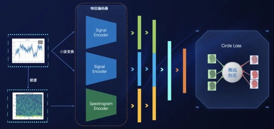 其中信号部分使用小波变换,分离出高频信号和低频信号,然后使用特征编码器进行特征提取。频谱部分通过对信号进行谱分析,对频谱图进行特征提取,特征提取编码器可以使用多种网络结构。