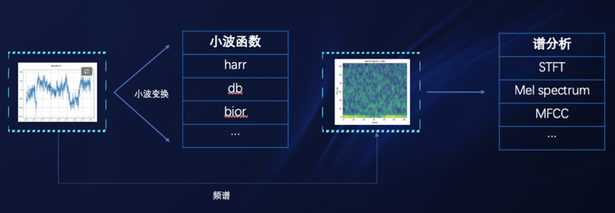 除了上述的傅立叶变换,小波变换也是一种变换分析方法,将傅立叶变换的基函数由无限长的三角基函数替换成有限长的会衰减的小波基函数。小波变换不仅可以知道序列或信号有哪些频率的成分,并且可以获得这些成分在时域上存在的具体位置。