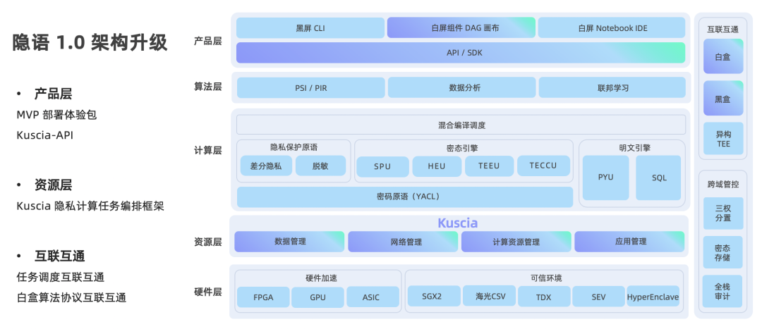 发布隐语组件标准: 遵从隐语组件标准的应用可以直接接入隐语技术栈。组件是 Kuscia 调度的最小计算单元, 可以在隐语平台中使用组件构建训练流。 -