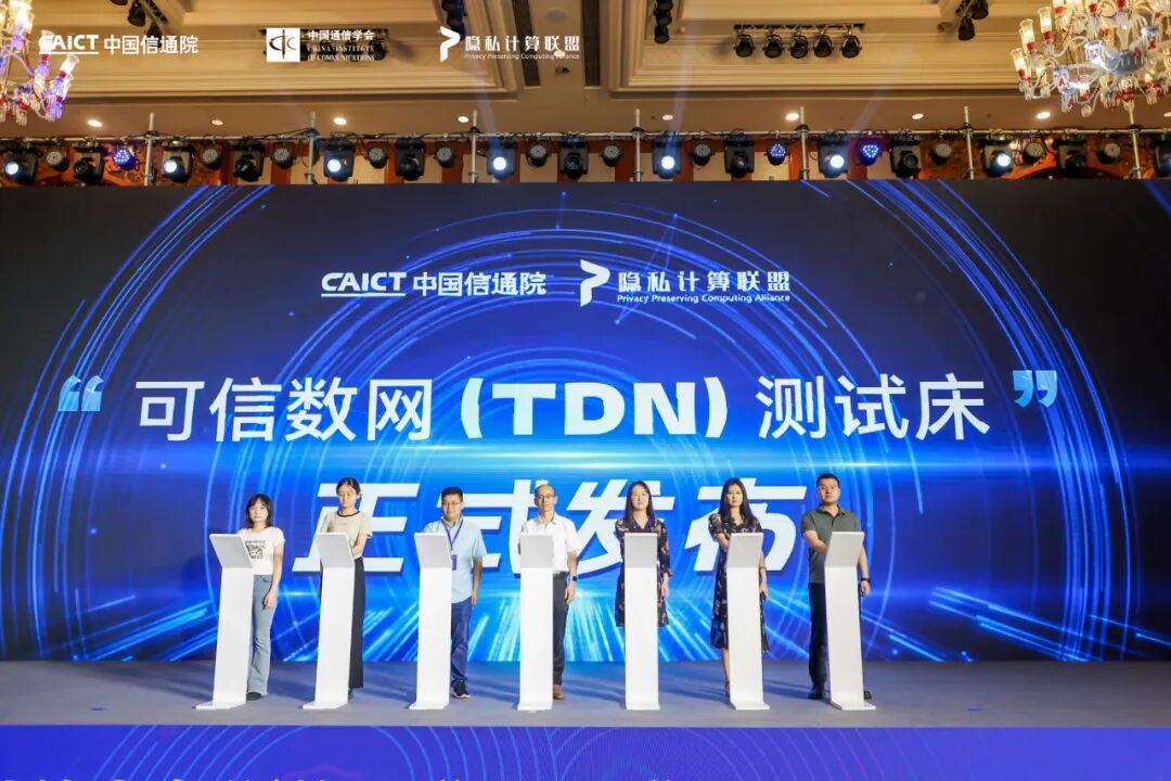 中国信通院云计算与大数据研究所副所长魏凯发布了可信数网(TDN)框架。可信数网是数据流通中各个参与方在互认、互信、互联的机制下,通过“织点成域、联域成网”,形成的跨区域、跨行业、跨主体的数据流通基础设施。魏凯从网络结构、功能框架、平台建设、应用场景和实施路径等角度进行了具体介绍。随后,中国信通院袁博、王思源等发布了“可信数网测试床”、 “可信数网 隐私计算互联互通第二批试点项目”等可信数网相关成果,蚂蚁作为联合首批成员单位深度参与。
