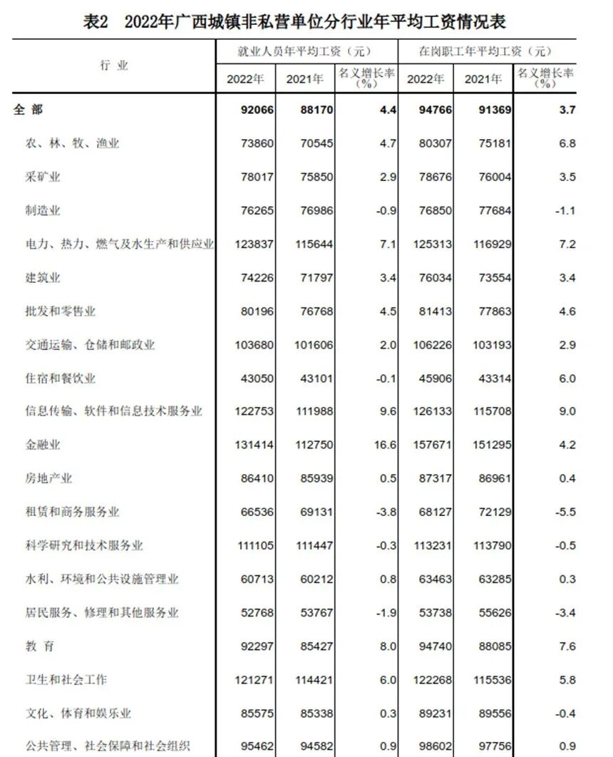 4、2022年全区分行业城镇非私营单位在岗职工年平均工资: