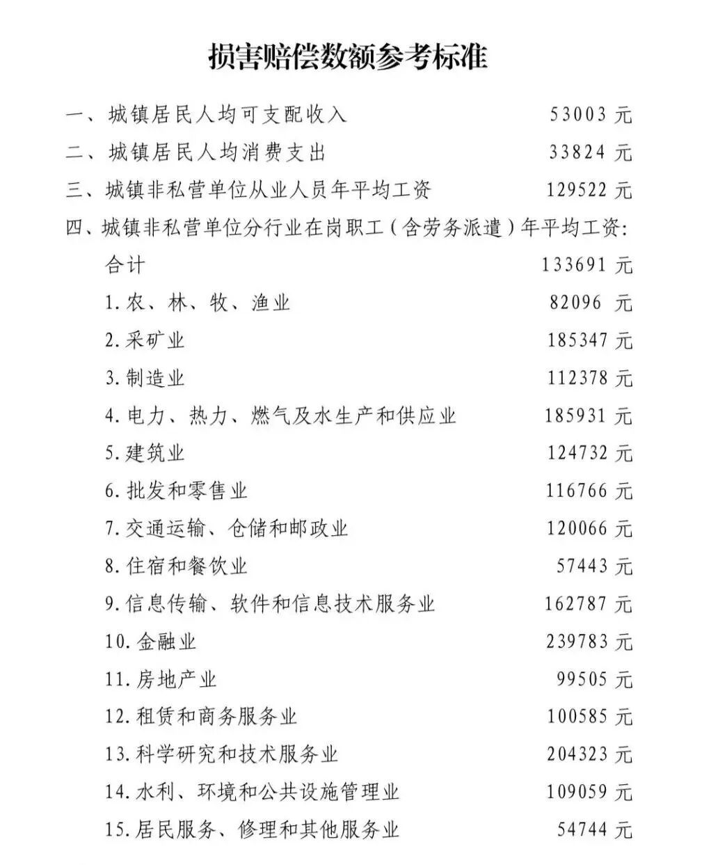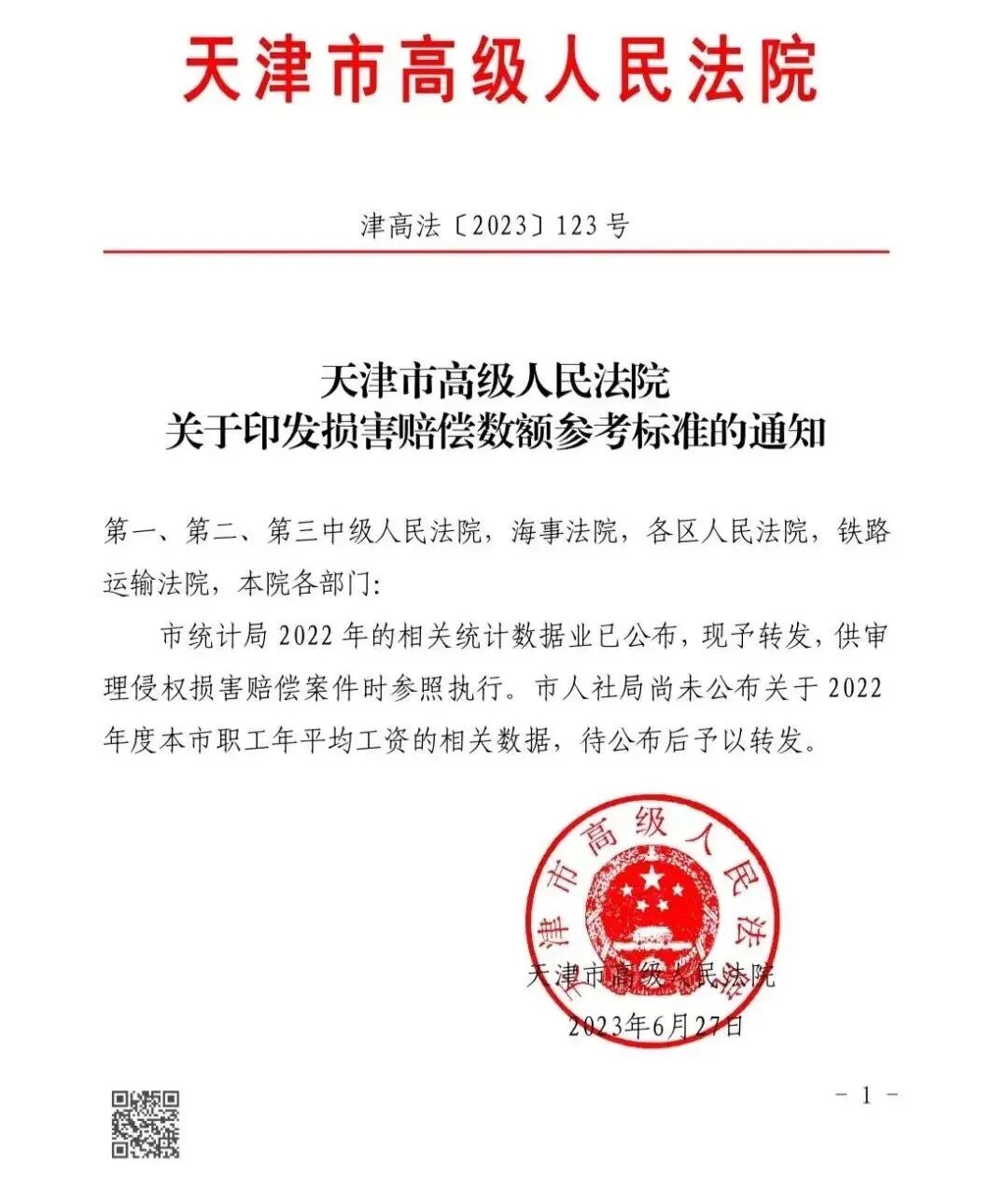 骑士保 天津市交通事故人身损害赔偿相关数据: