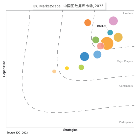 7月15日,全球领先的IT市场研究和咨询公司IDC发布了最新的市场研究报告《IDC MarketScape:中国图数据库市场厂商评估,2023》。报告显示,蚂蚁集团自研的企业级图数据管理平台TuGraph跻身"领导者"象限。