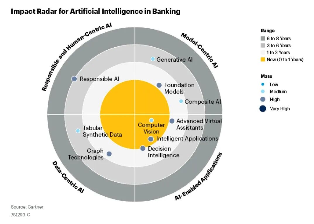 资料来源:Gartner®《金融领域AI影响力雷达》(Emerging Tech Impact Radar: Artificial Intelligence in Banking,Moutusi Sau et al.),2023年1月13日发布