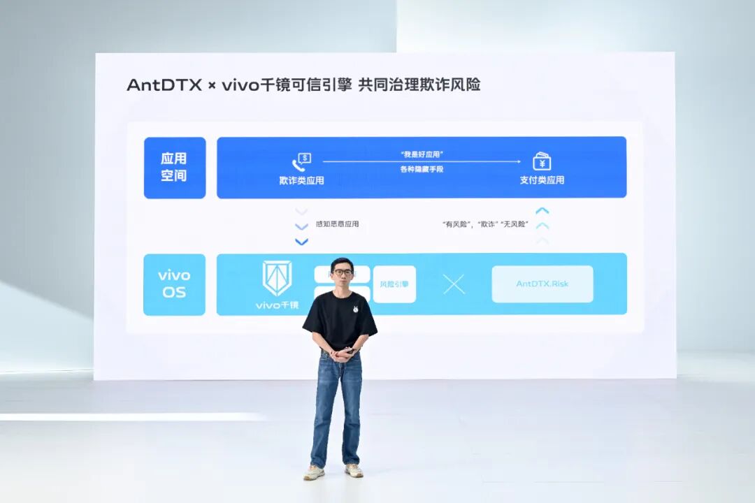 本次开发者大会下设安全隐私专场,分论坛内容围绕“网络安全生态共建”主题展开。基于与vivo反诈生态协同共建的终端安全能力,蚂蚁安全实验室高级技术专家辛知在会上分享了蚂蚁安全与vivo基于AntDTX终端中间件技术底座的联合技术探索,及在反电诈风险前置感知层面取得的初步协作应用成果。