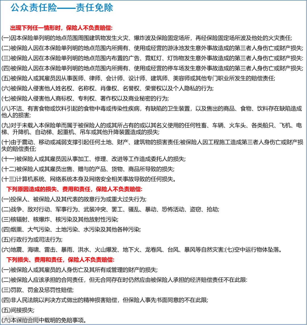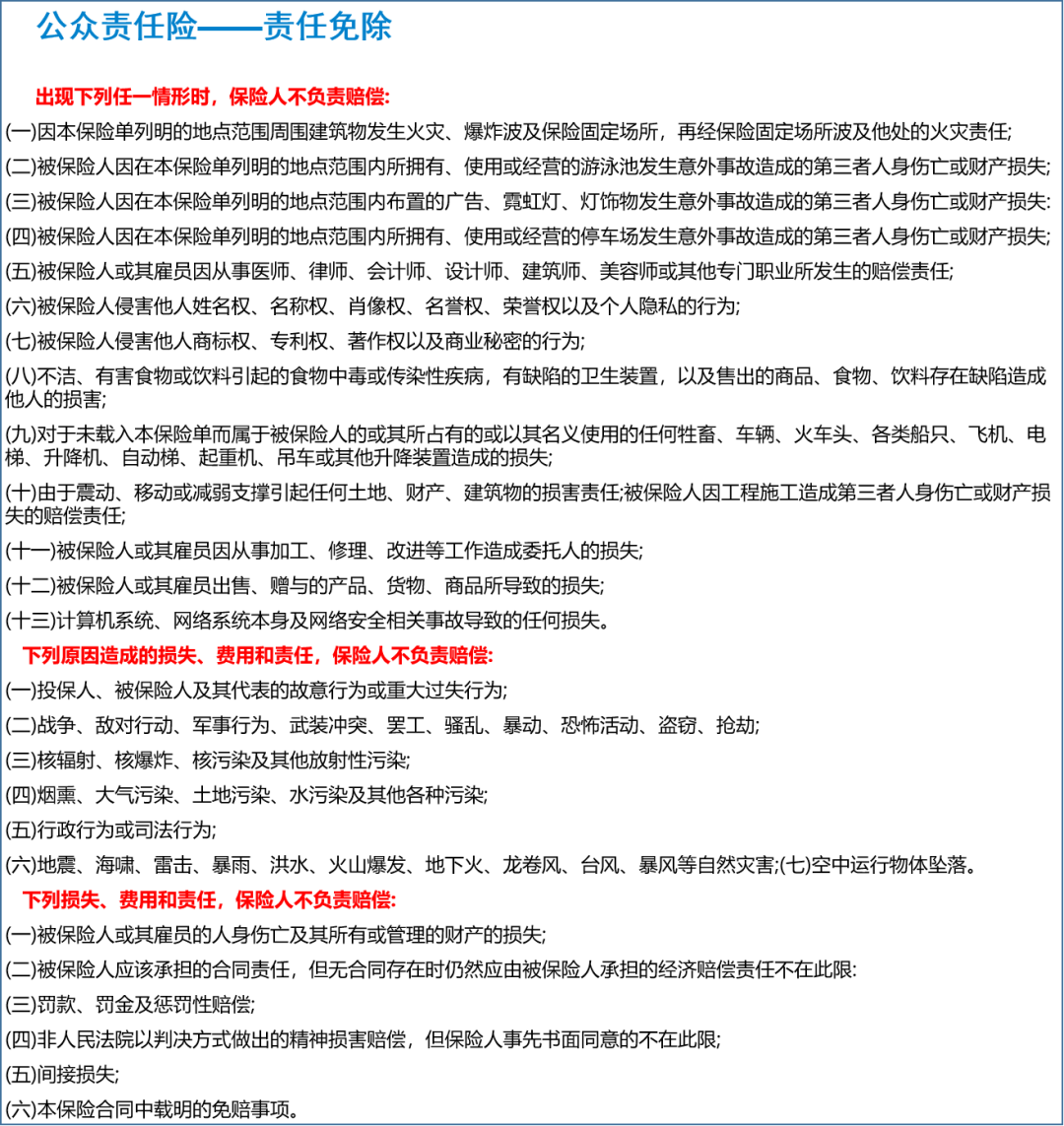 公众责任险责任范围