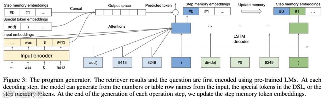 在retriever缩小了回答问题所需数值的查询范围之后,我们使用program generator来生成具体的计算过程。program generator由baseline模型、transformer decoder模型和remove redundancy模型集成而得到。program generator每一步预测计算符号及其参数,计算的参数可为先前的计算结果或召回文本(表格)中的数值,直到预测EOF符号结束计算过程。