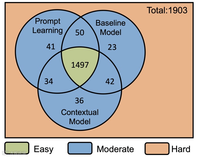 在图4的venn图中,绿色表示三个模型均正确预测的文本,蓝色表示仅一个或两个模型正确预测,橘黄色表示三个模型均未正确预测,可以看到三个模型虽然使用同样的数据训练,但是其预测能力仍有不同,这为集成模型提供了基础。上述三个模型均对每一句文本输出其正类别分数,利用valid数据集可以基于这些分数训练一个逻辑回归分类器来达到集成的效果。