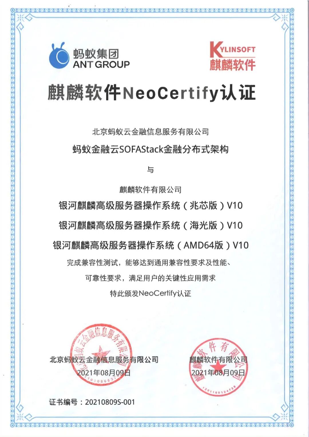 至此,蚂蚁集团已经与数十家国内主流操作系统、CPU等软硬件厂商完成了产品兼容互认证。