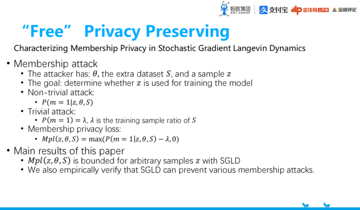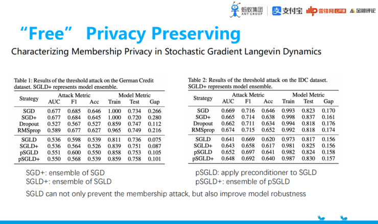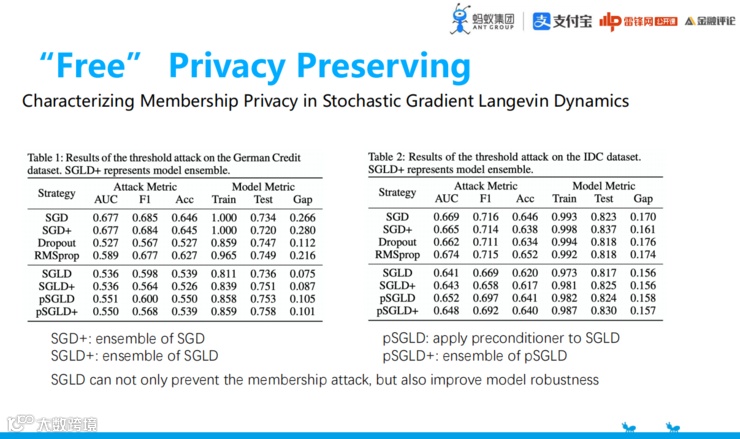 因此,我们在训练时也把传统的SGD换成了SGLD,能进一步提升安全等级,在兼顾三方面要求后,具有比较高的安全性和高效性。