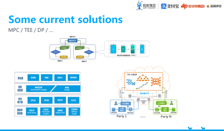 包括MPC,可信执行环境,差分隐私和联邦学习。