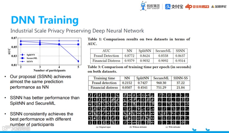 我们跟业界的几个方法也对比过,比如2017年 MIT的 SplitNN和现在最好的SecureML。
