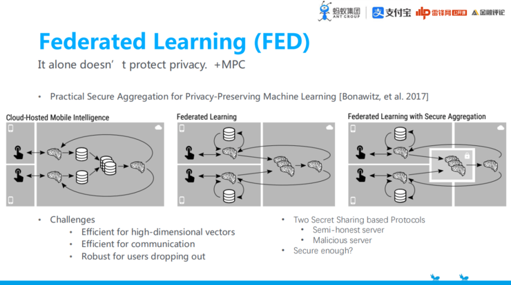 谷歌在2017年期间已经发现了,原来把梯度直接汇聚到服务器上的协同学习方法也不是很安全;如果要保护隐私,必须得结合MPC的技术。