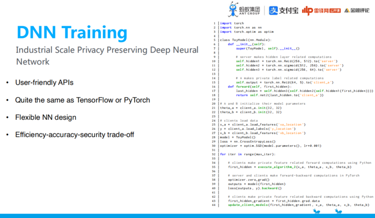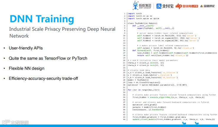 刚才讲到,在服务器里,可以很好利用现有的TensorFlow或Pytorch,从右边这个代码可以看出来,该方法是非常用户友好的。