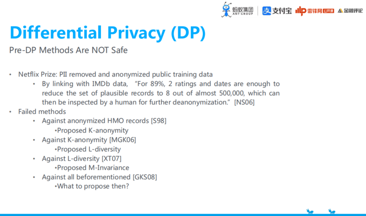 这个技术在提出来之后,因为它有比较好的理论保障,所以在学术界、工业界很多人也都在用,能比较好地保护Output privacy,跟前面的技术也有比较好的结合。