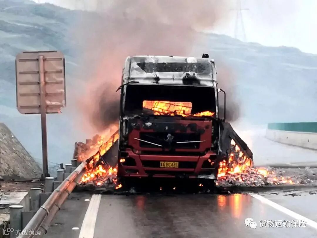 首先在发车前购买货运保险,火灾这种基本险就承保,基本险也便宜点。