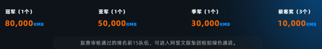 此外,这次大赛总奖金池 38 万,每个赛道奖金池 19 万,设有 1 支冠军队伍、1 支亚军队伍、1 支季军队伍和 3 支极客奖队伍。