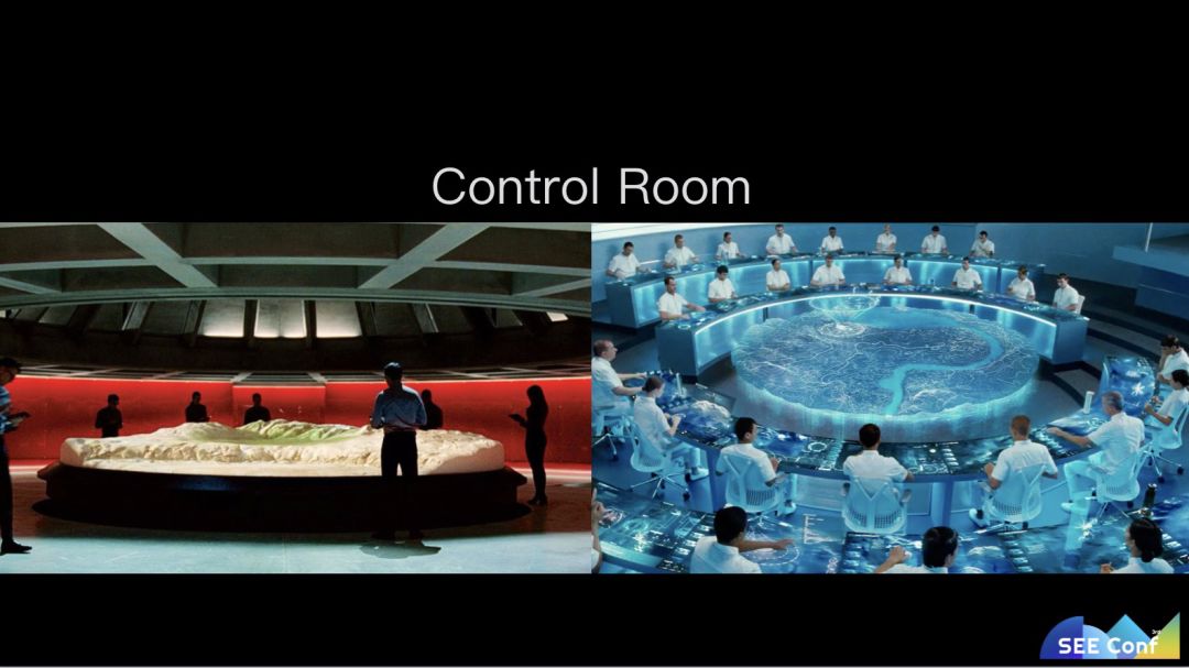 来自蚂蚁金服体验技术部图形与艺术实验室的分享显得有些科幻,他们将西部世界和饥饿游戏里的 Control Room 变成了现实。