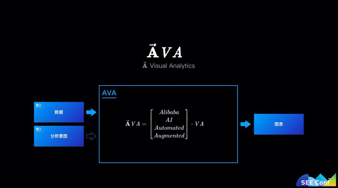 AVA后两个字母表示 Visual Analysis,而前面的“A”是个包含多个含义的向量。具体含义包括阿里巴巴、AI、自动化以及增强,分别代表不同方面的特征。