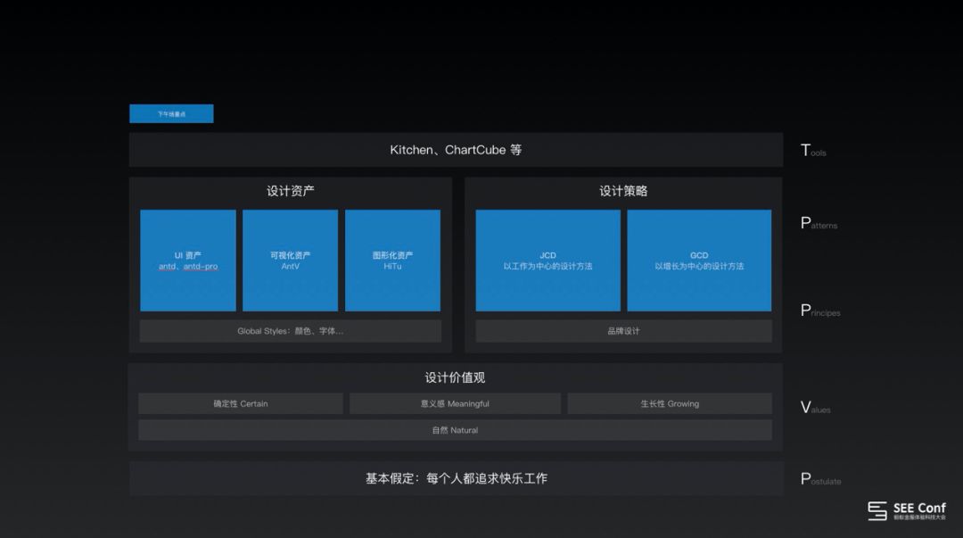 在基本假定以及这套设计价值观之上,加上三类设计资产和两种设计策略,以及为开发者提供的配套工具,就构成了 Ant Design 4.0 的全景图。