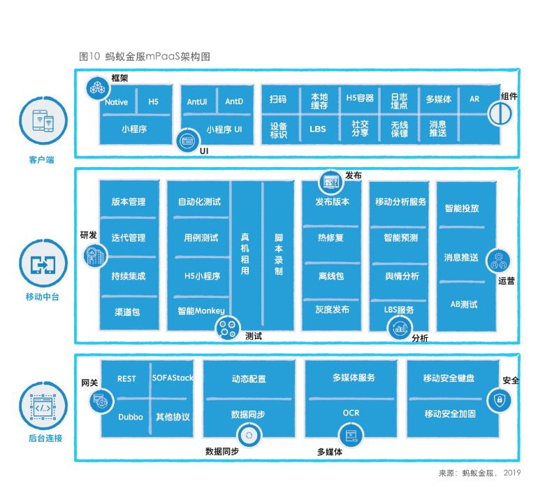 基于对金融市场的洞察和全新用户行为的理解,蚂蚁金服移动开发平台mPaaS借助统一的客户端开发框架和蚂蚁特有的金融级移动中台能力,有效地加快研发效率,增加对APP动态管控及千人千面的数字化运营能力。同时基于“后台连接服务”构建与服务端的数据、多媒体传输通道,确保全链路的稳定、安全和高效。