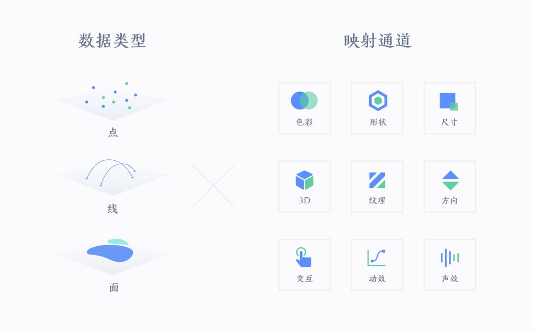 基于「图形符号学」,结合现代多媒体新方式,启发了色彩、形状、尺寸、3D、纹理、方向、交互、动效、声效 9 大映射通道,体系化的探寻地理可视化的种种可能。