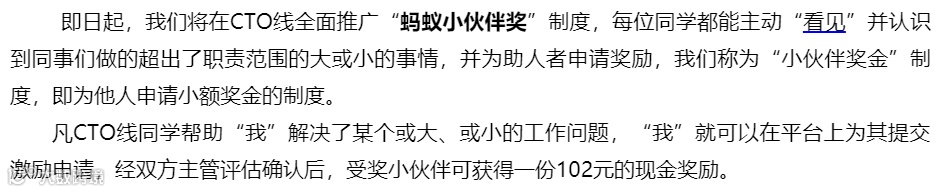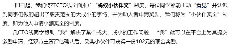 原来,这个非常文艺的“看见”,其实就是“蚂蚁小伙伴奖”制度。