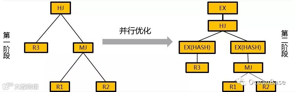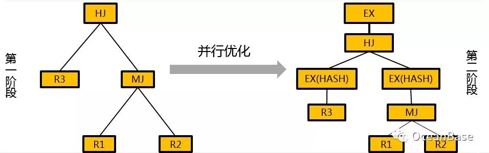 OceanBase 二阶段的分布式计划优化方法能减少优化空间,降低优化复杂度,但是因为在第一阶段优化的时候没有考虑算子的分布式信息,所以可能导致生成的计划次优。目前 OceanBase 正在实现一阶段的分布式计划优化: