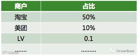 OceanBase 使用参数化计划缓存的方式,但是在很多蚂蚁真实的业务场景下,对所有的参数使用同一个计划并不是最优的选择。考虑一个蚂蚁商户域的业务场景,这个场景以商户的维度去记录每一笔账单信息,商户可以根据这些信息做一些分析和查询。这种场景肯定会存在大小账号问题,如下图所示,淘宝可能贡献了 50% 的订单,LV 可能只贡献了 0.1% 的订单。考虑查询“统计一个商户过去一年的销售额”,如果是淘宝和美团这种大商户,那么直接主表扫描会是一个合理的计划,对于 LV 这种小商户,那么走索引会是一个合理的计划。