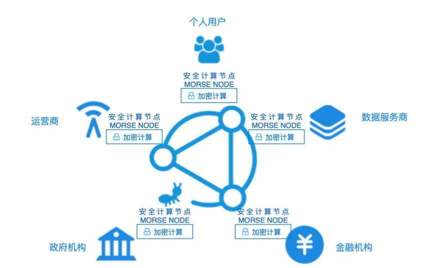 蚂蚁区块链摩斯安全计算平台针对上述的数据安全信任、个人隐私保护以及数据基础设施不足等痛点,秉持“数据可用不可见”和“将计算移动到数据端”的原则,借助区块链、密码学、隐私保护、安全多方计算、可信计算等前沿技术,建设安全、保护隐私、高效、通用、轻量、去中心化的数据合作基础设施,打通数据孤岛,帮助机构之间实现安全便捷合规的数据合作,为用户带来更多的便利和实惠。