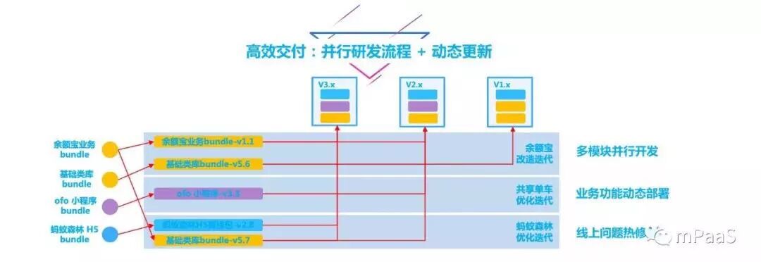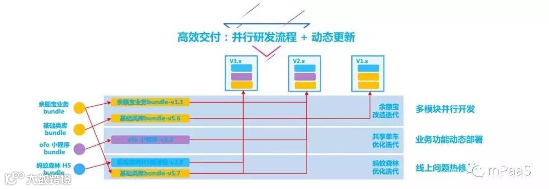 这也正是我们基于 mPaaS 做的对外输出。支付宝这套框架不止是支付宝自己用,也需要快速赋能我们的合作伙伴,大家都是统一的架构底层,支持业务之间的灵活联动和快速扩张,这也是前面提到的超级 App 的技术特点。
