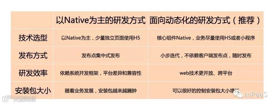 总结来说,技术升级驱动研发方式产生转变,从 Native 为主的研发方式向动态化的研发方式进行转变: