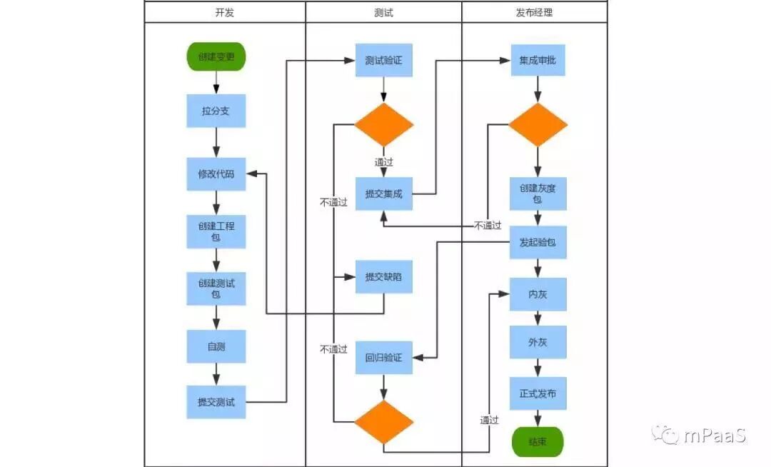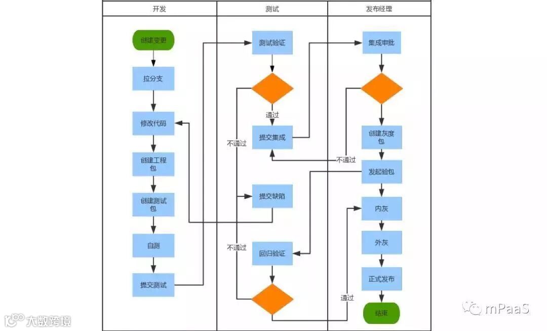 发布:会有发布经理这个角色,简单的理解就是最终搭积木的那个人,会审批每个积木到底能不能进最终的大架子,然后再进行各种灰度和发布流程。