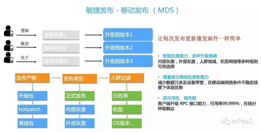发布方式:目前基于“小步迭代”的选择,不依赖客户端发布点,从而达到随时发布的能力;