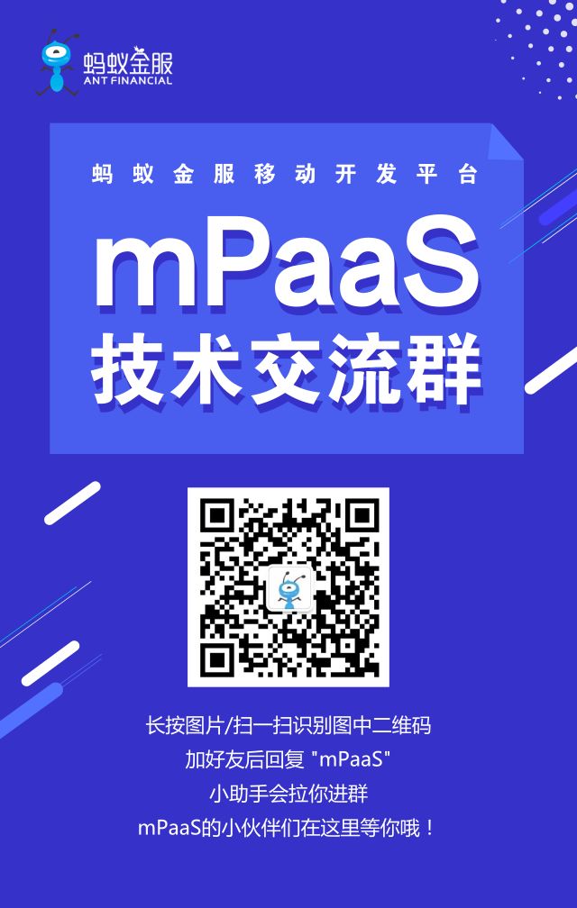 现在即可扫描下方二维码联系蚂蚁金服加群小助手,回复关键词“mPaaS”,快速加入mPaaS技术交流群!