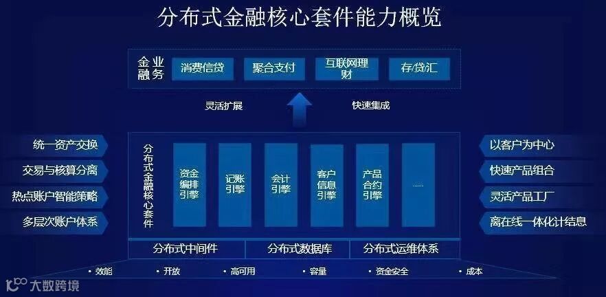 支付宝平台的业务场景从支付演进到理财、微贷、银行、保险等领域,通过对外业务与技术开放的融合,蚂蚁金服需要创造全新的技术底层构架即分布式金融核心系统,以快速协助业务上各个产品服务的开发创新和互通,提升服务效率和用户体验。