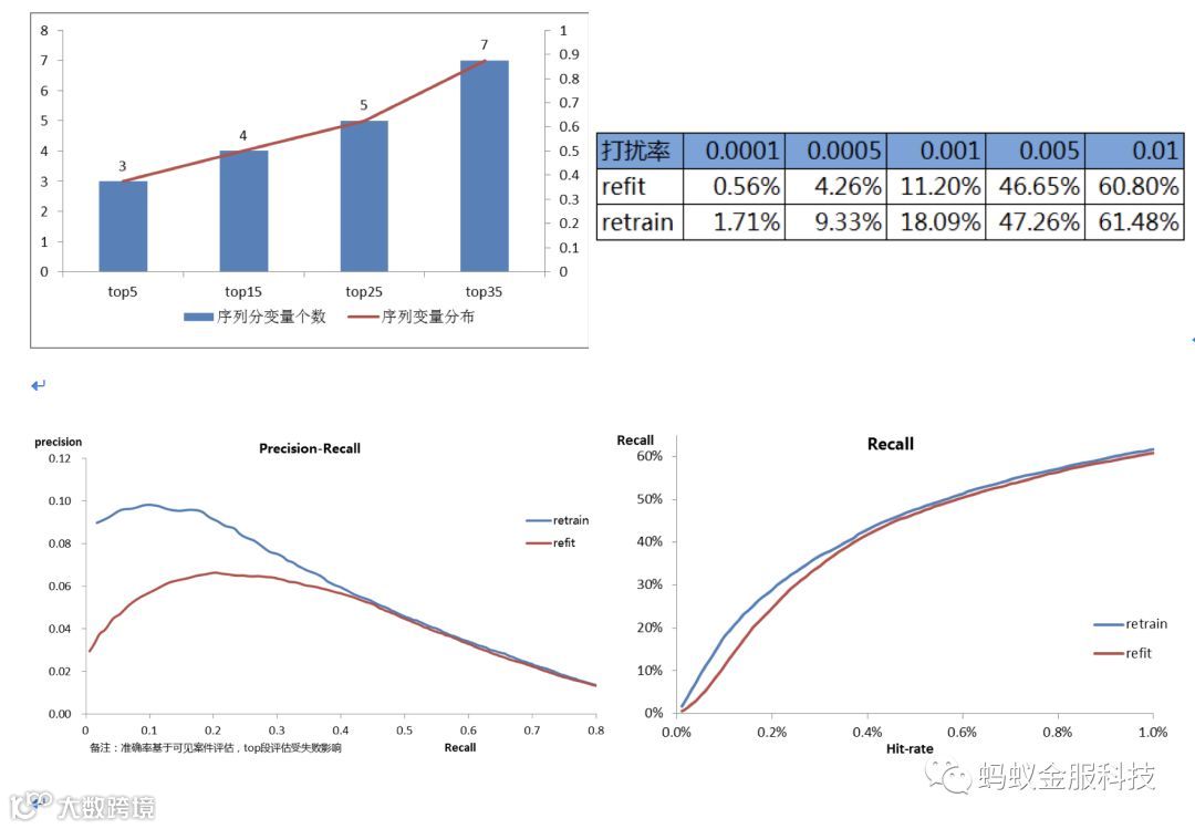 我们主要刻画卡的收款序列,取每个收款事件上卡的属性及行为特征作为向量输入训练LSTM模型,将序列隐藏层最后一步输出接一个全连接层最终输出embedding向量。另我们尝试了不同位数的卡bin截断,尽量保证新卡能被历史卡bin覆盖同时粒度不能太粗,最终选择10位及12位两种截断方式。我们将卡维度的embedding及卡bin维度汇总的embedding变量T+1推送线上,GBDT Retrain模型的效果如下:模型在全量卡交易评估同打扰下可提升2-3%的覆盖率,在全量卡交易评估同打扰下可提升3-4%的覆盖率: