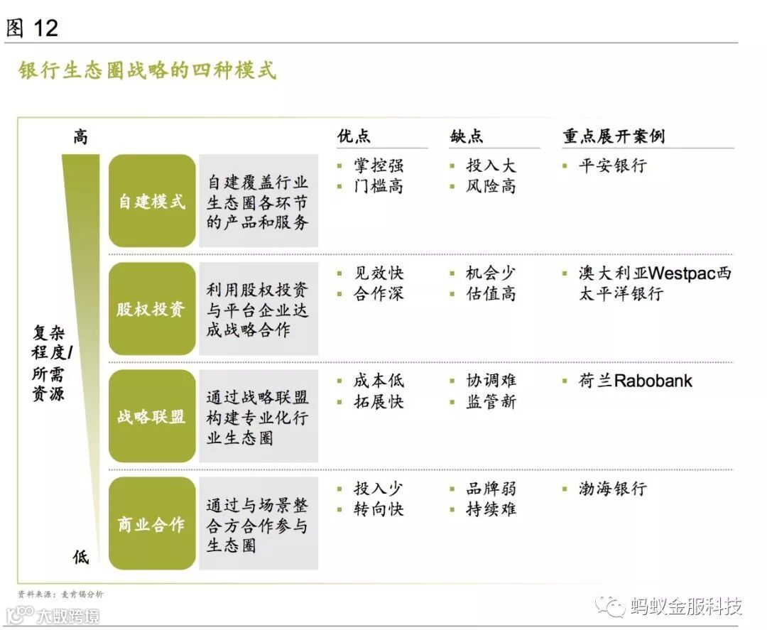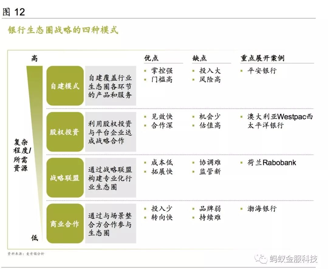 最后,麦肯锡总结了银行建设生态圈战略的四种模式: