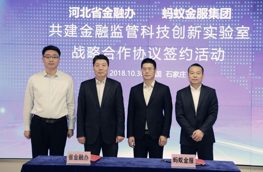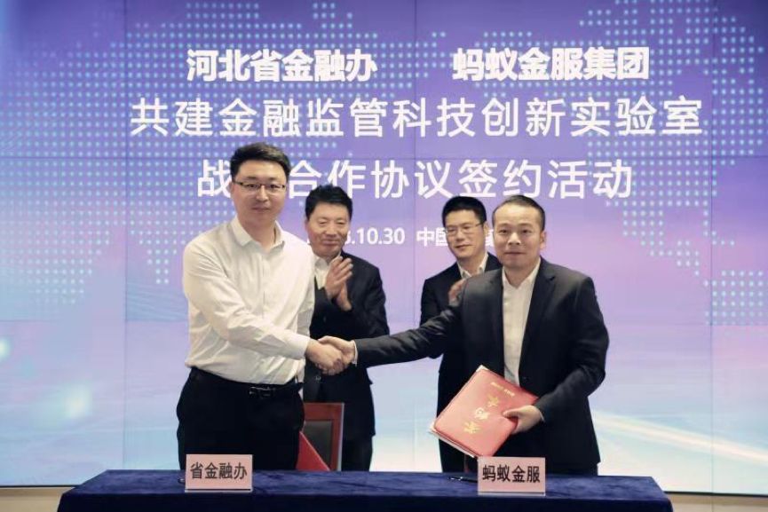 10月30日,河北省金融办与蚂蚁金服签署战略合作,双方将共建“河北省金融监管科技创新实验室”,依托于实验室,双方共同探索为河北金融风险防控、新技术金融监管应用等方面提供技术支撑,助力河北风险防控和金融监管创新发展。