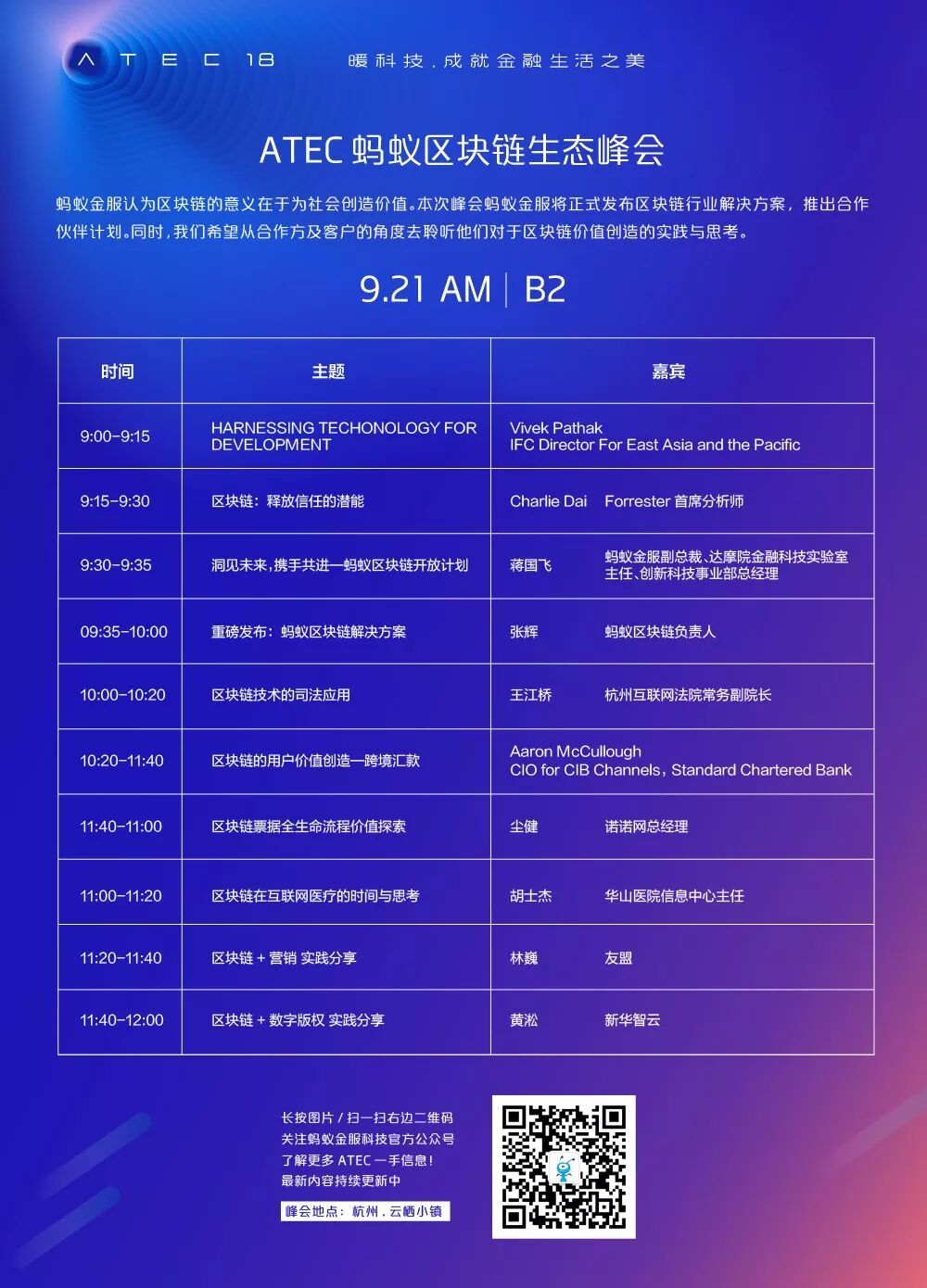 就在9月21日,蚂蚁金服ATEC(Ant Technology Exploration Conference)技术探索大会的“金融科技开放峰会”和“蚂蚁区块链生态峰会”即将上演了。