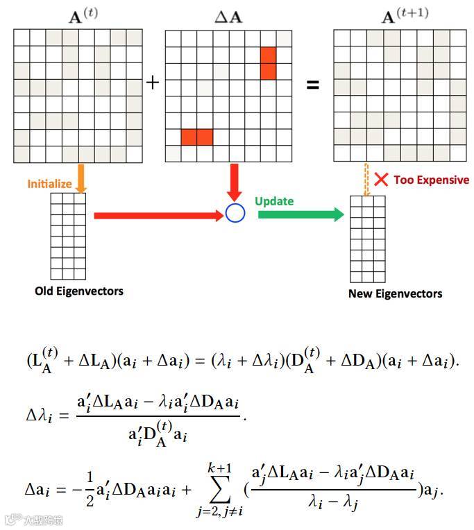 利用矩阵摄动理论(matrix perturbation theory)增量在线更新embedding results。