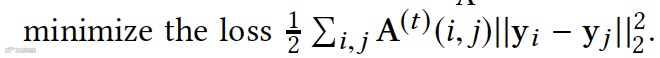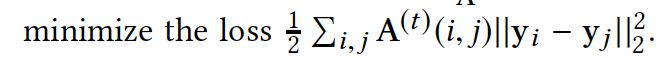 目标是将相似性高的两个节点,映射到低维空间后依然保持距离相近,其损失函数定义为: