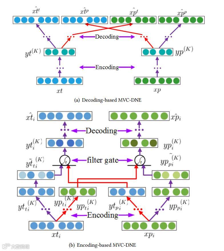 其中一路是该节点的邻居结构,一路是该节点的属性数据。两路数据分别使用autoencoder进行学习,但在学习过程中会将两路数据在中间过程中进行合并,从而达到作者所说的节点和其属性的合并学习。