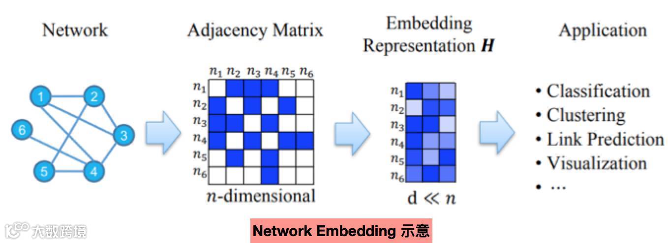Network Embedding,即将网络节点、community投影到低维向量空间,用于node classification、link prediction、community detection、visualization等任务。