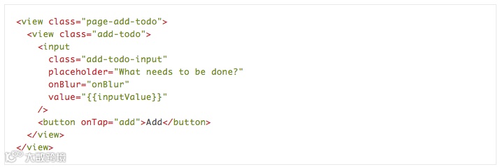 相对于 todo list 页面,add-todo 页面使用了新的 <input/> (https://docs.alipay.com/mini/component/input)来接受用户输入。