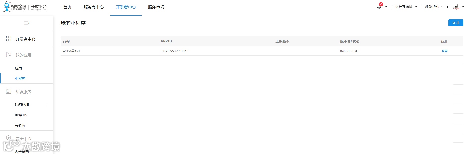 创建后可在【我的小程序】列表页看到对应的小程序APPID,该ID在上传版本时需要填写